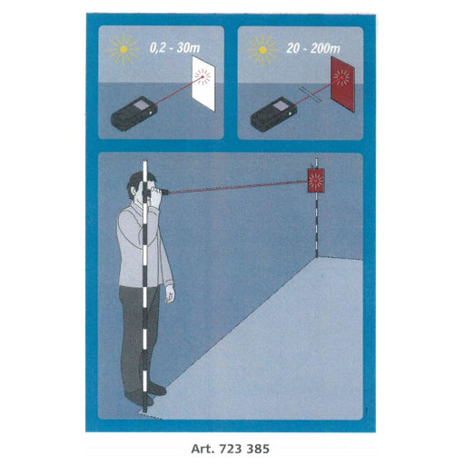Disto Target 50-200m A target to use with the Disto distance meter to enhance the visibility of the laser beam The target has 2 sides: a w...